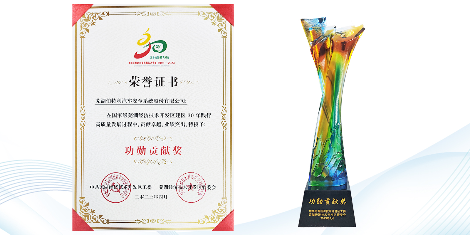 【喜訊】伯特利榮獲蕪湖經(jīng)濟(jì)技術(shù)開(kāi)發(fā)區(qū)建區(qū)30周年“功勛貢獻(xiàn)獎(jiǎng)”
