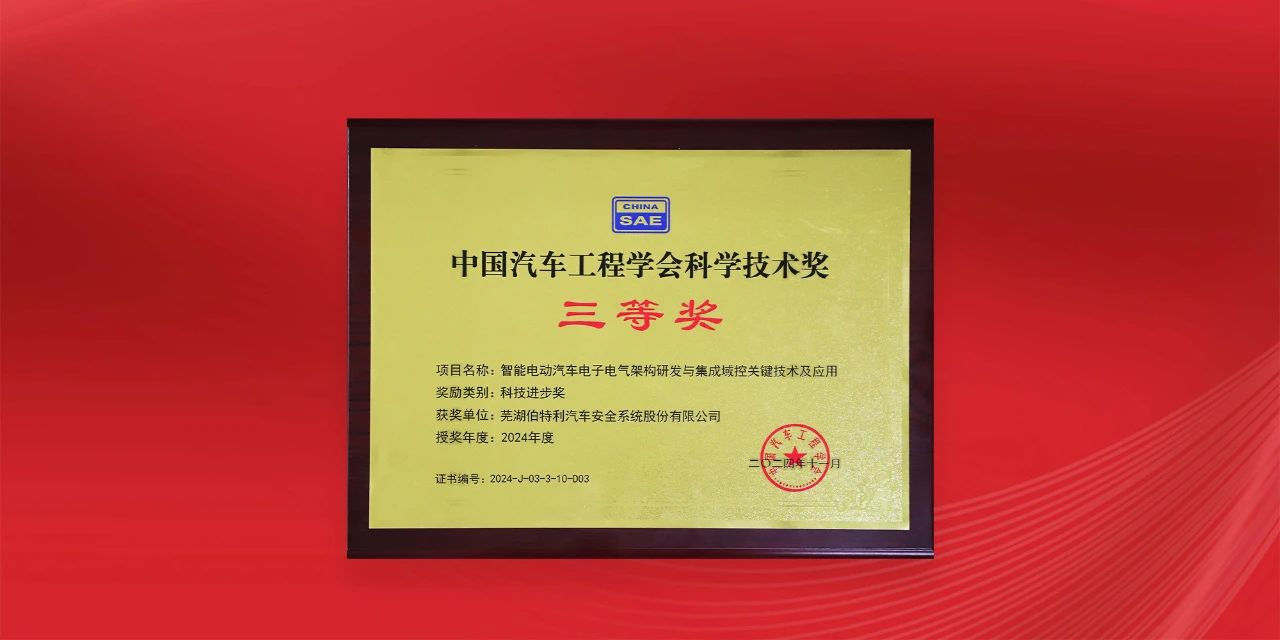 再獲權威認可!伯特利榮獲中國汽車工程學會科學技術獎三等獎